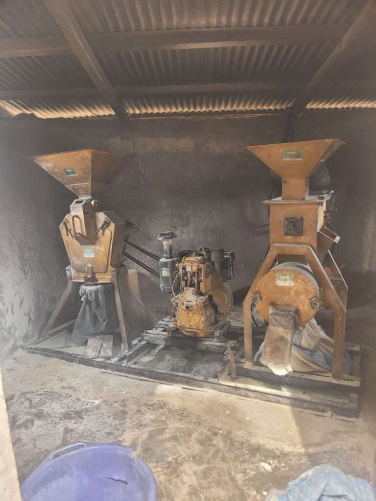 Une autre lacune du Village de Noubou est dans ses moyens de  productions. Très peu d’équipements sont disponibles pour traiter et transformer quoi que ce soit. L’installation d’un moulin/décortiqueuse vise à aider la population à transformer les récoltes en farine destiné à leur consommation personnelle et à la revente.